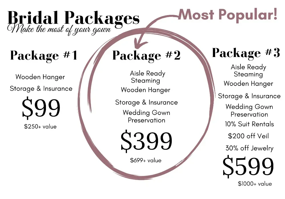 We also offer aisle ready steaming of your dress and veil starting at $100. The final price will be based on the amount of time it takes to get your dress perfect for your big day.